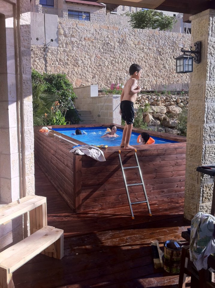 פרויקט בניית בריכה מלבנית עם דק במעלה אדומים - מבט מהצד